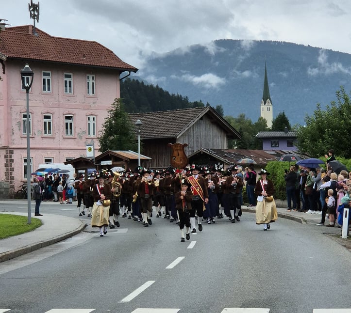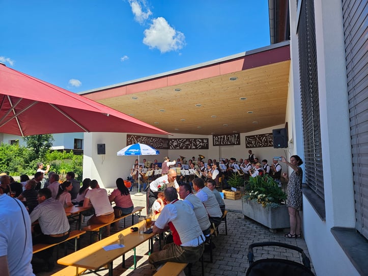 Am Herz-Jesu-Sonntag haben wir auch in diesem Jahr traditionellerweise unseren Tag der Blasmusik veranstaltet. Nach dem ein begleiten unserer Schützenkompanie zum Gottesdienst und der anschließenden Herz-Jesu-Prozession haben wir um 10:30 Uhr mit unserem Frühschoppen gestartet! Unsere Gastkapelle aus Markt Hartmannsdorf musste leider kurzfristig aufgrund einer Beerdigung absagen und so durften wir die "Goinger Böhmische" zum Auftakt unseres Tages der Blasmusik begrüßen! Unsere Musikantenfreunde aus Going haben ein tolles Frühschoppenkonzert für uns gespielt und im Anschluss haben noch "Die drei Zuagspitztn" für perfekte Stimmung und Unterhaltung gesorgt! Wir durften uns über zahlreichen Besuch freuen und gemeinsam einen tollen Tag der Blasmusik verbringen!