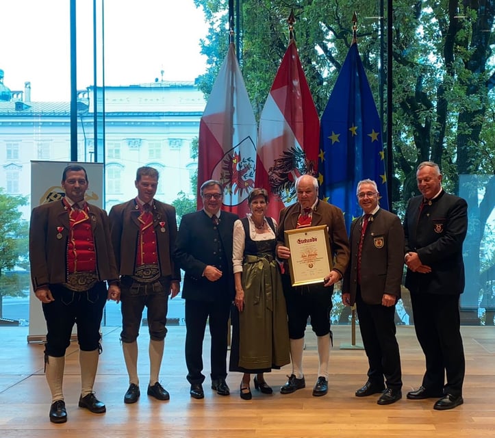 Am Sonntag den 9. Oktober hatten wir die Ehre mit unserem Musikanten Feldkircher Hans und seiner Gattin Maria in unsere Landeshauptstadt Innsbruck zu fahren um dort am Ehrungstag der Blasmusik teilzunehmen. Nach der gemeinsamen Busreise mit den zu Ehrenden des Unterinntaler Blasmusikverbandes fand um 13 Uhr in der Jesuitenkirche in Innsbruck ein Festgottesdienst statt. Um 14:30 Uhr war dann der große Festakt im Großen Saal des "Haus der Musik Innsbruck". Unser Mitlgied Feldkircher Hans hat für seine 60jährige Mitgliedschaft bei der BMK Schwoich das Goldene Verdienstzeichen vom Land Tirol erhalten übergeben vom noch regierenden Landeshauptmann und Präsidenten des Tiroler Blasmusikverbandes Günther Platter! Herzliche Gratulation unserem Hans von der BMK Schwoich. Wir haben dann bei unserem Jahreskonzert am 19. November die Gelegenheit die Verdienste unseres Hans zu präsentieren und ihn dafür zu ehren bzw. zu feiern! Es war ein toller und würdiger Rahmen.